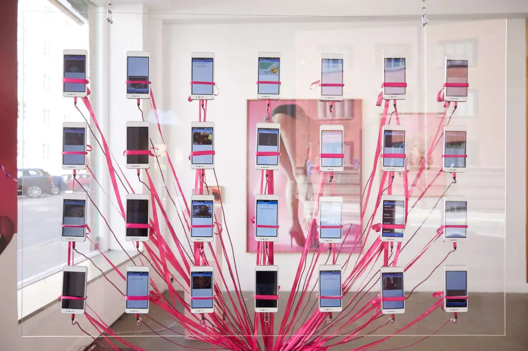 Cette réappropriation des normes féminines, des clichés et des stéréotypes est présente chez les deux artistes : Molly Soda et Arvida Bystrom. Leur appropriation et jeu avec les normes de la féminité passent énormément par le biais du numérique et plus particulièrement des réseaux sociaux. Nous retrouvons pour les deux l’utilisation récurrente du smartphone dans leur projets, qu’il soit la sous forme d’image ou comme support de lecture.